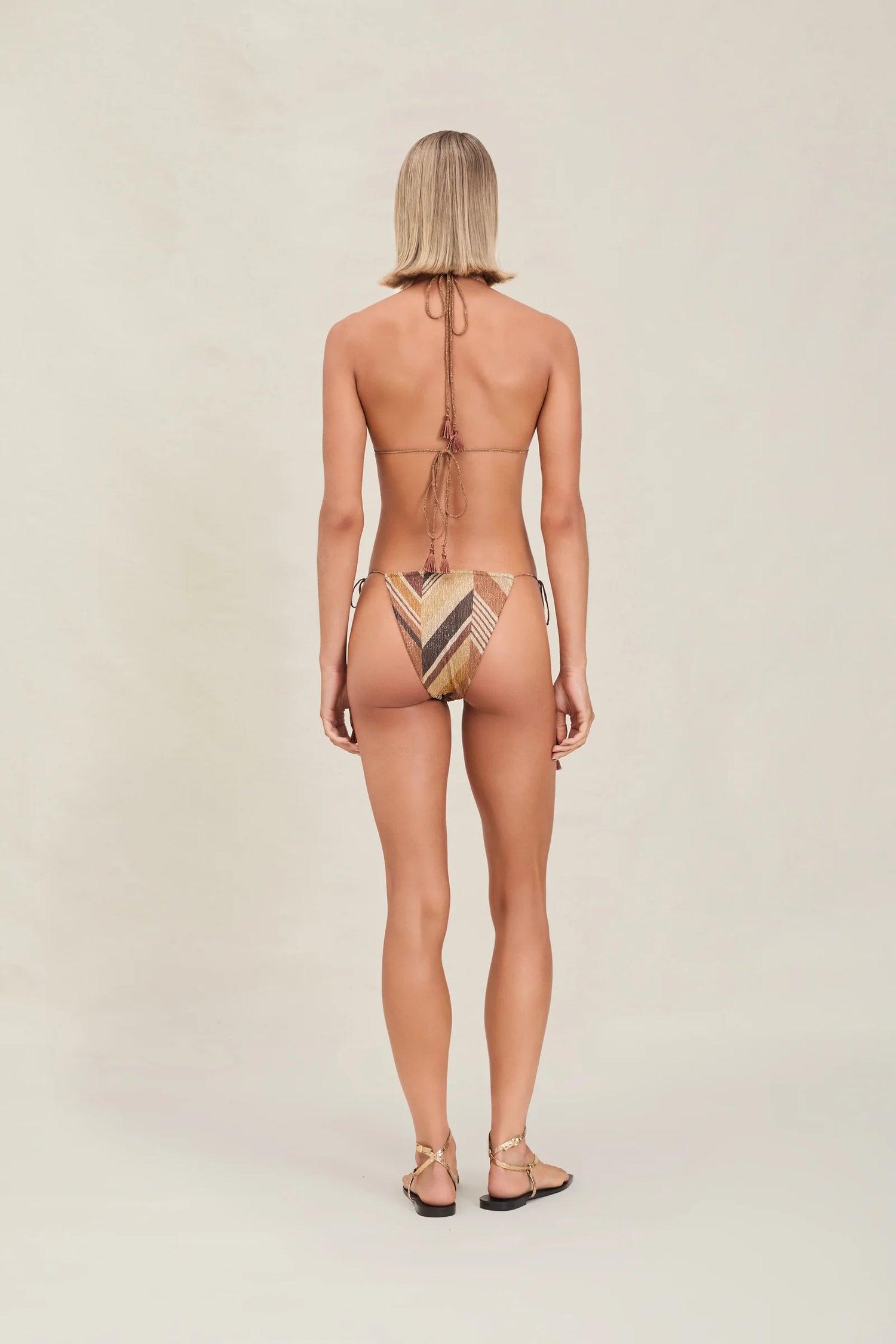 The Whit is an adjustable bottom with tassel detailing on the straps, tunneled back for adjustable coverage to allow for both cheeky or moderate coverage. Pairs back to the Winona Top.