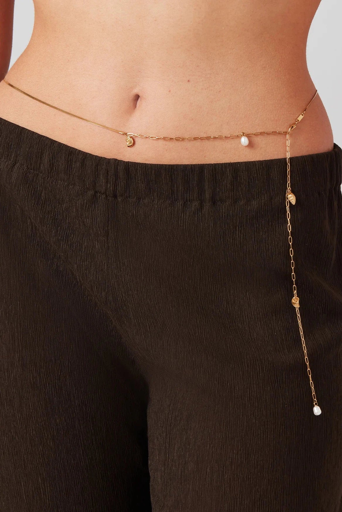 The Lucille Body Chain shines in high-polish gold, adorned with delicate charms that add a playful yet elegant touch. Designed to layer effortlessly, it pairs perfectly with your favorite bikini, a chic matching set, or any outfit in need of a hint of dainty glam.