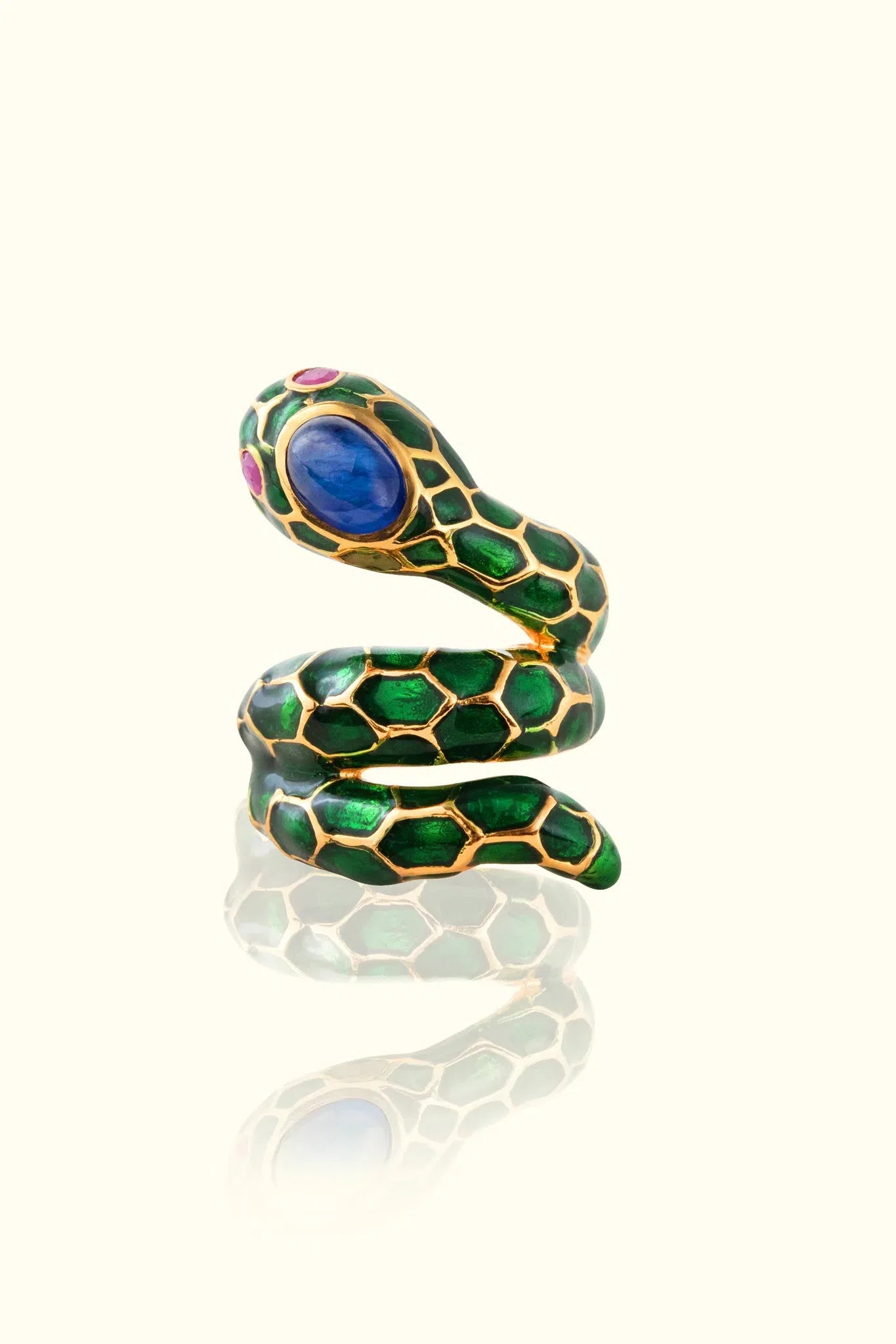 Unleash your inner majesty with the Zalvage 18K Gold Plated Anaconda Ring, a stunning statement piece that embodies elegance and boldness. Crafted with meticulous attention to detail, this ring features a striking anaconda-inspired design that wraps gracefully around your finger, symbolizing strength and allure.