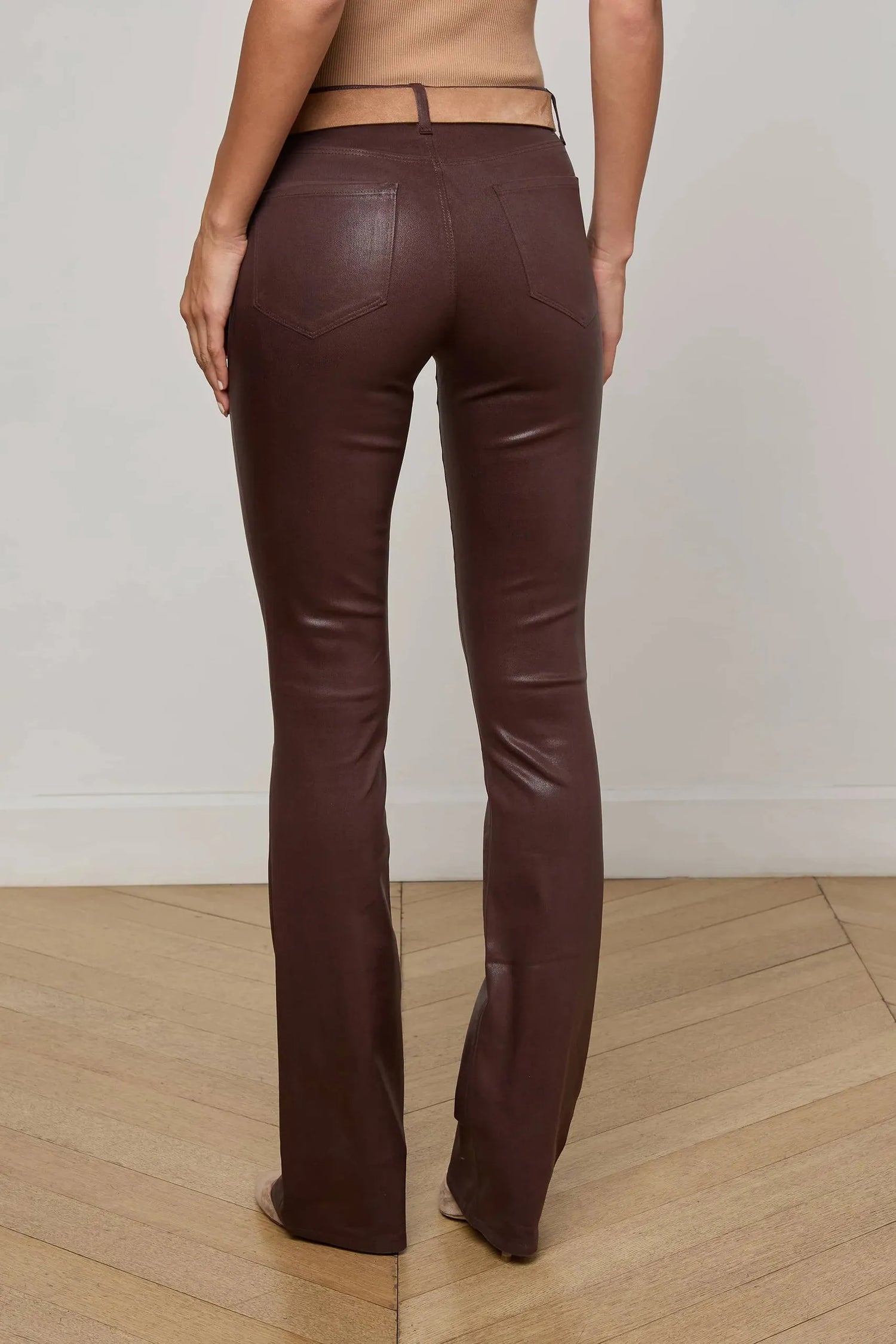 The Selma Jean is a sleek, slim bootcut style designed to flatter, featuring a contoured waistband that hugs the waist without gaping. Crafted from super-stretch coated denim for a leather-like look and feel, it’s finished with faux front pockets, functional back pockets, and a classic zip fly with button closure. Now back in a rich chocolate brown, it’s the perfect mix of polish and edge.