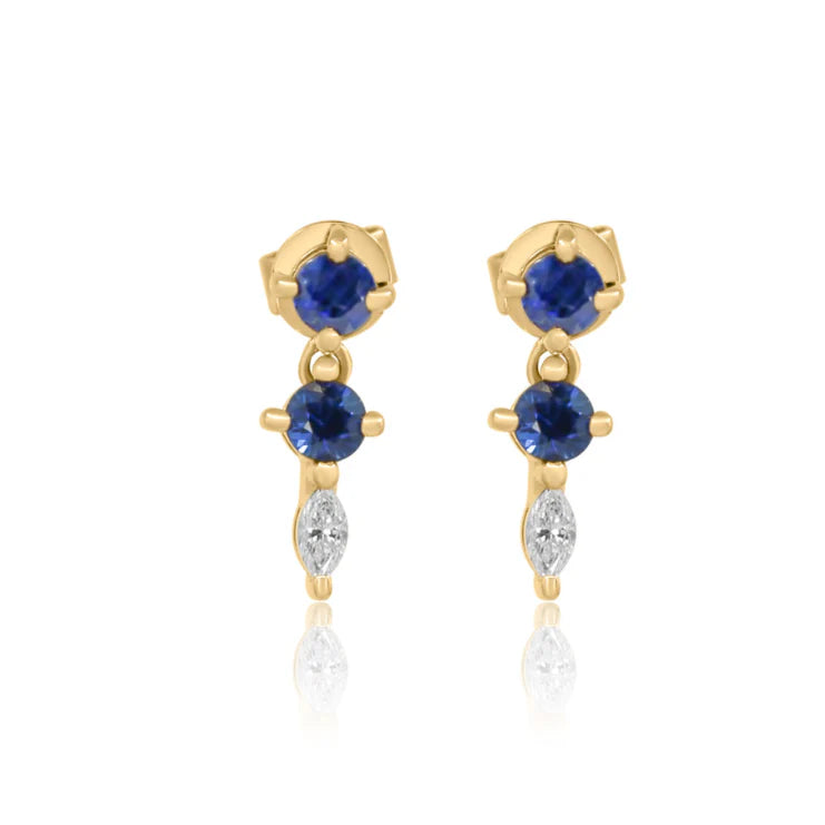 GOLD DOUBLE BLUE SAPPHIRE DIAMOND DROP EARRING