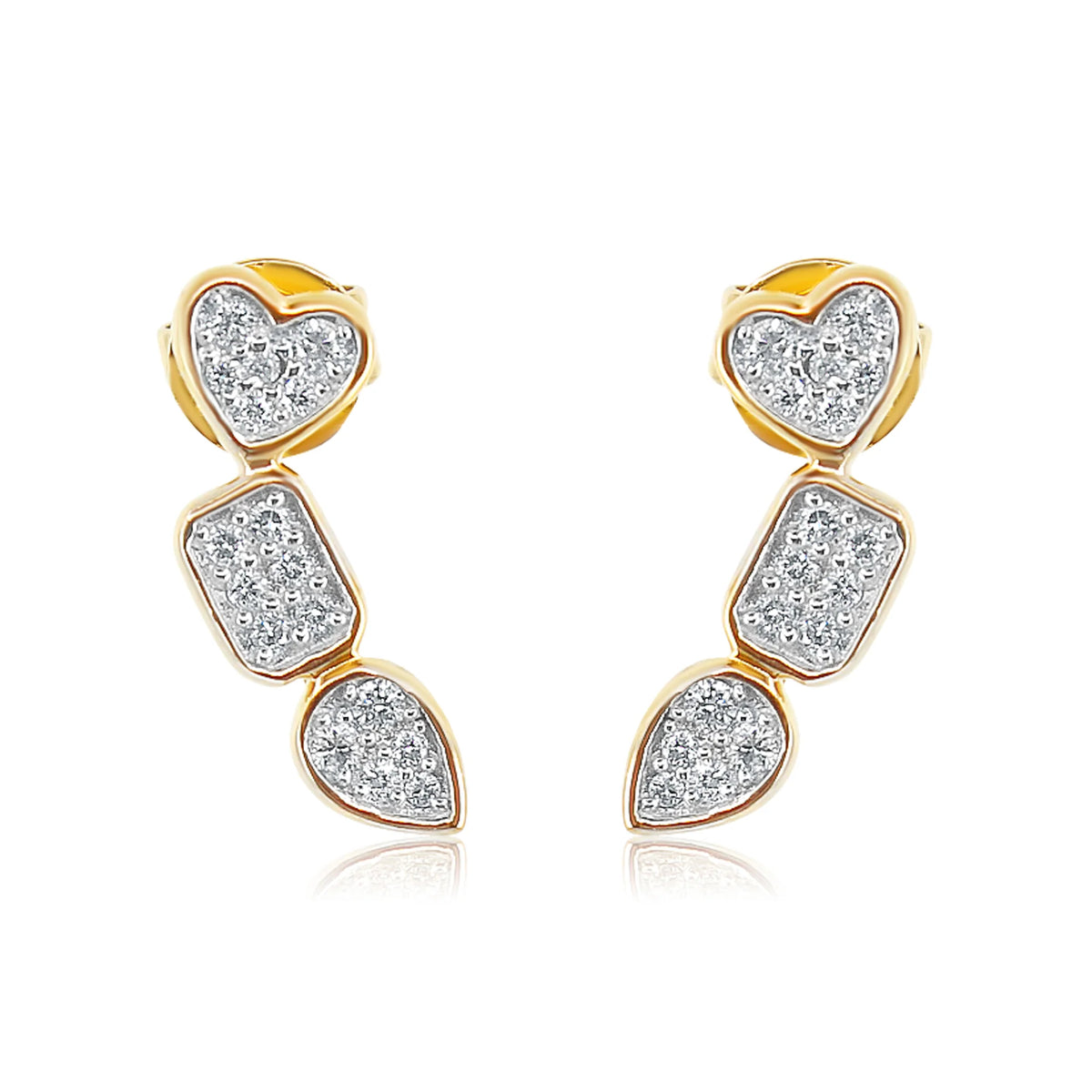 GOLD LAB GROWN MULTI SHAPE CLIMBER DIAMOND STUDS - SINGLE