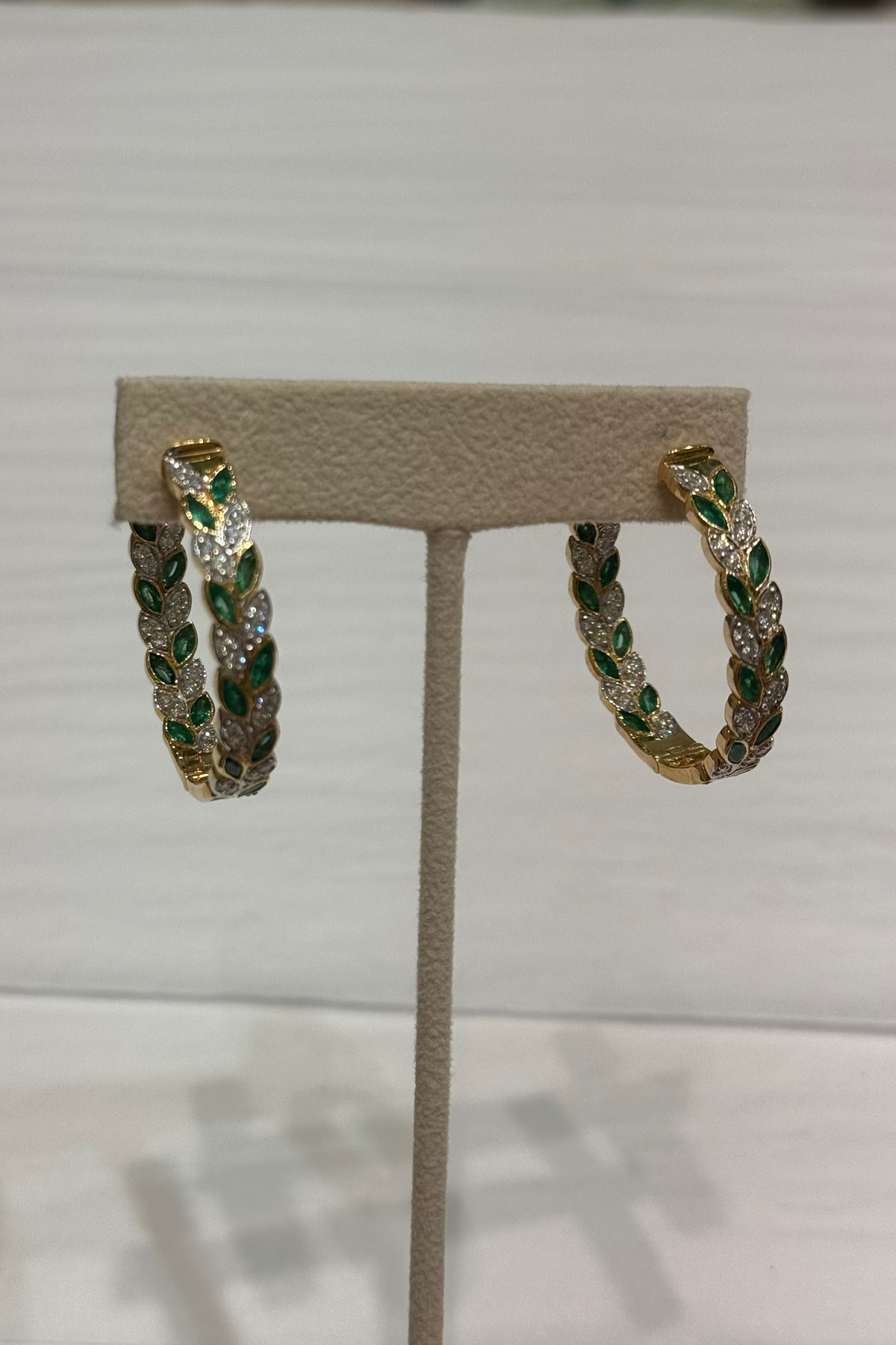 GOLD DIAMOND AND EMERALD MULTI MARQUISE HOOPS
