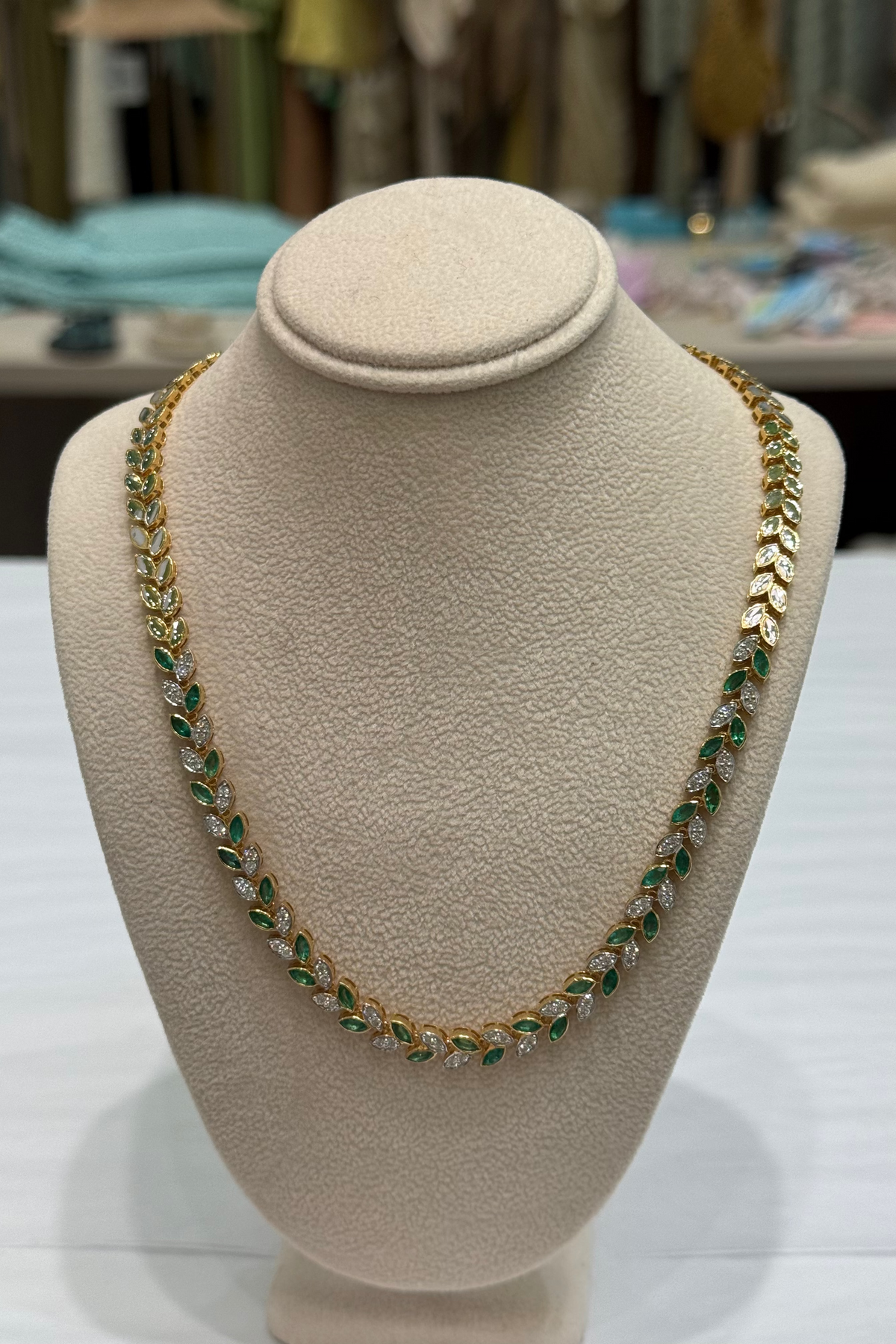 GOLD DIAMOND AND EMERALD MULTI MARQUISE NECKLACE