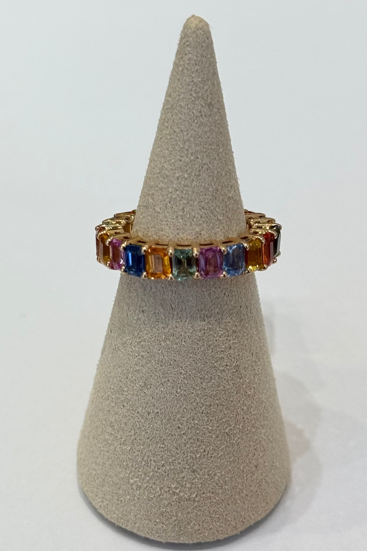 GOLD MULTI SAPPHIRE BAGUETTE ETERNITY RING