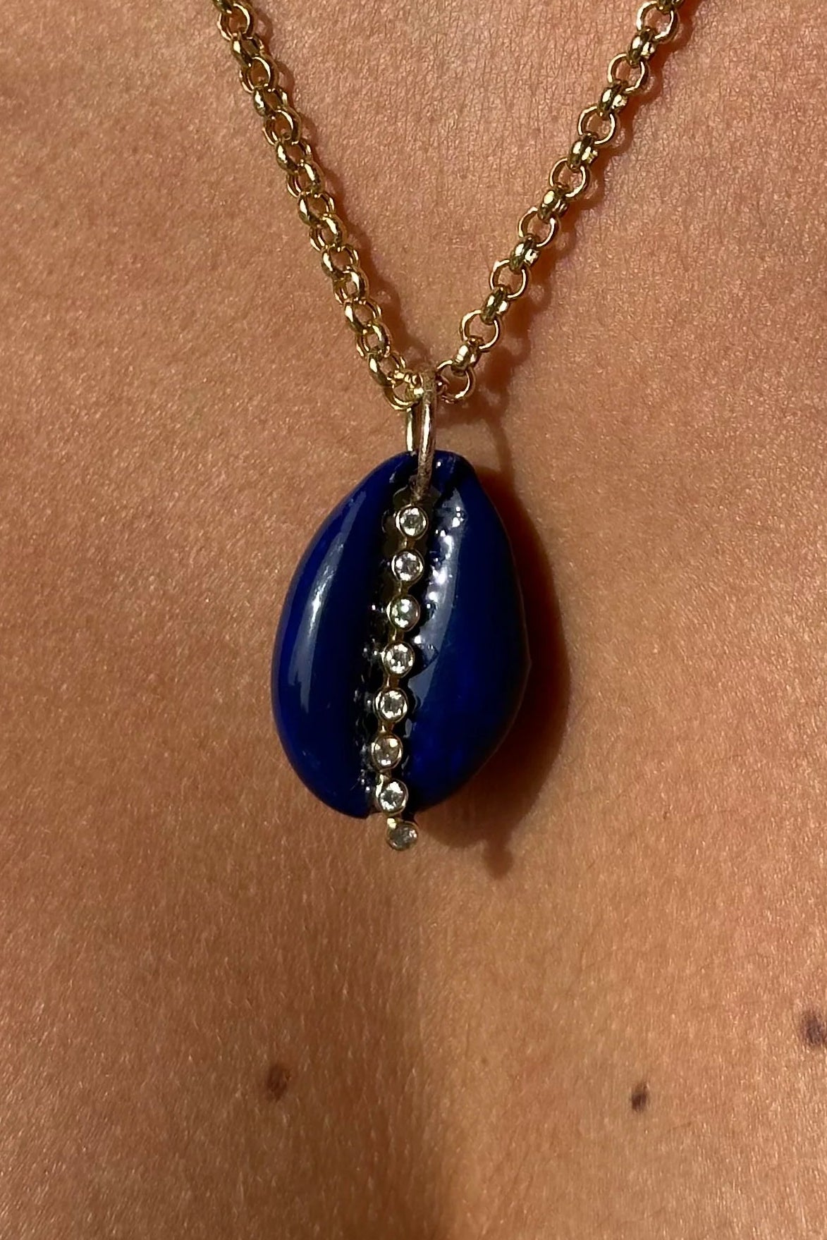 GOLD DIAMOND NAVY COWRIE SHELL PENDANT
