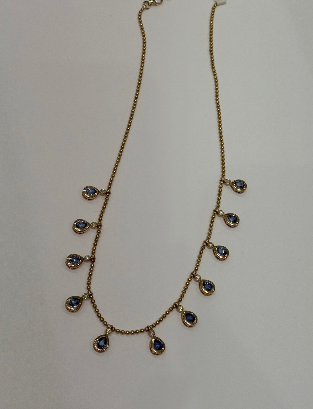 MULTI SAPPHIRE & DIAMOND DROP PEAR NECKLACE