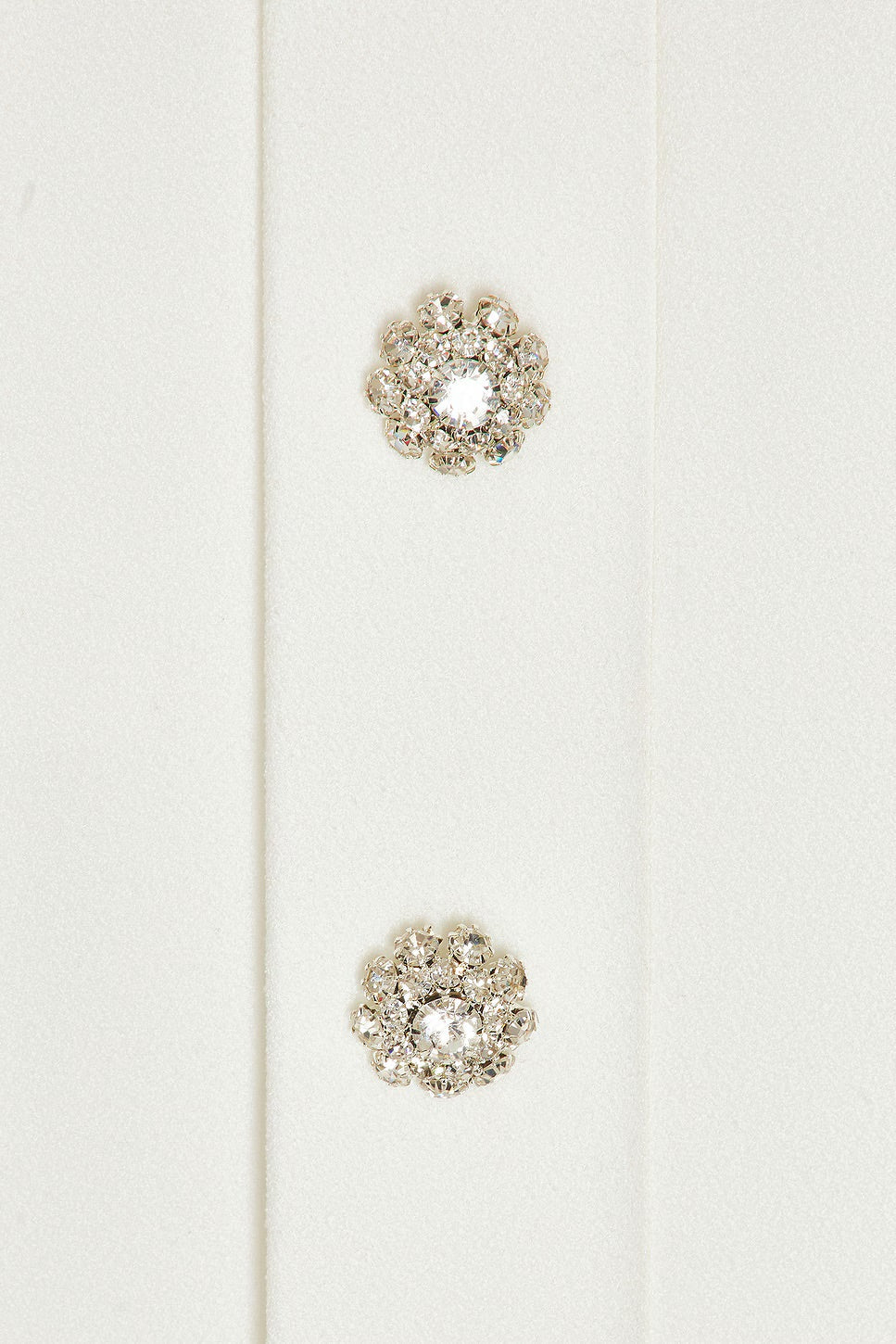 The perfect structured mini bubble dress embellished with crystal buttons.