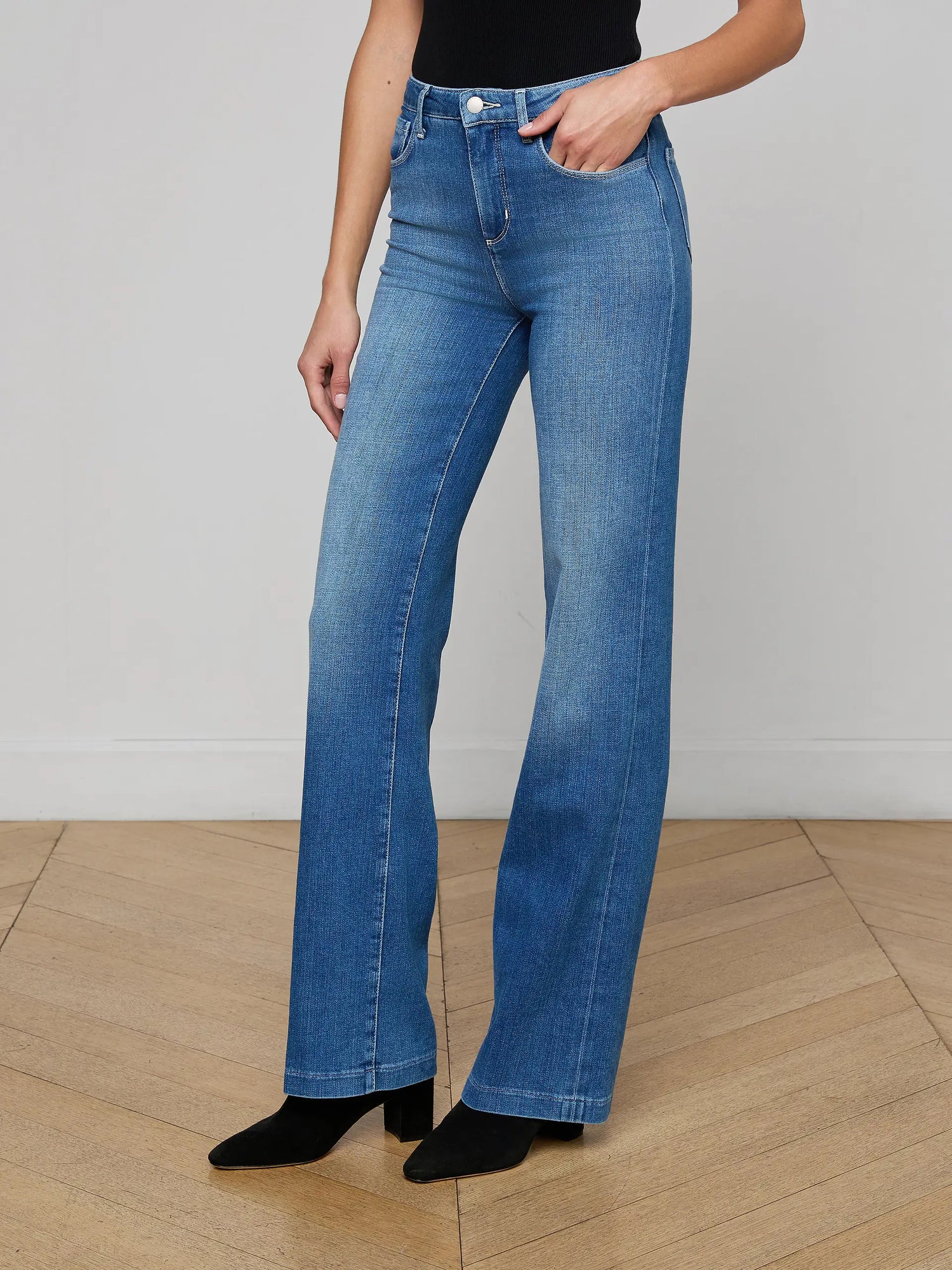 A polished wide-leg jean, fitted and flattering through the hips. Constructed with a contoured waistband that hugs the natural waist without gaping, the Clayton is also our tallest wide-leg jean. Now back in a an aged indigo wash.