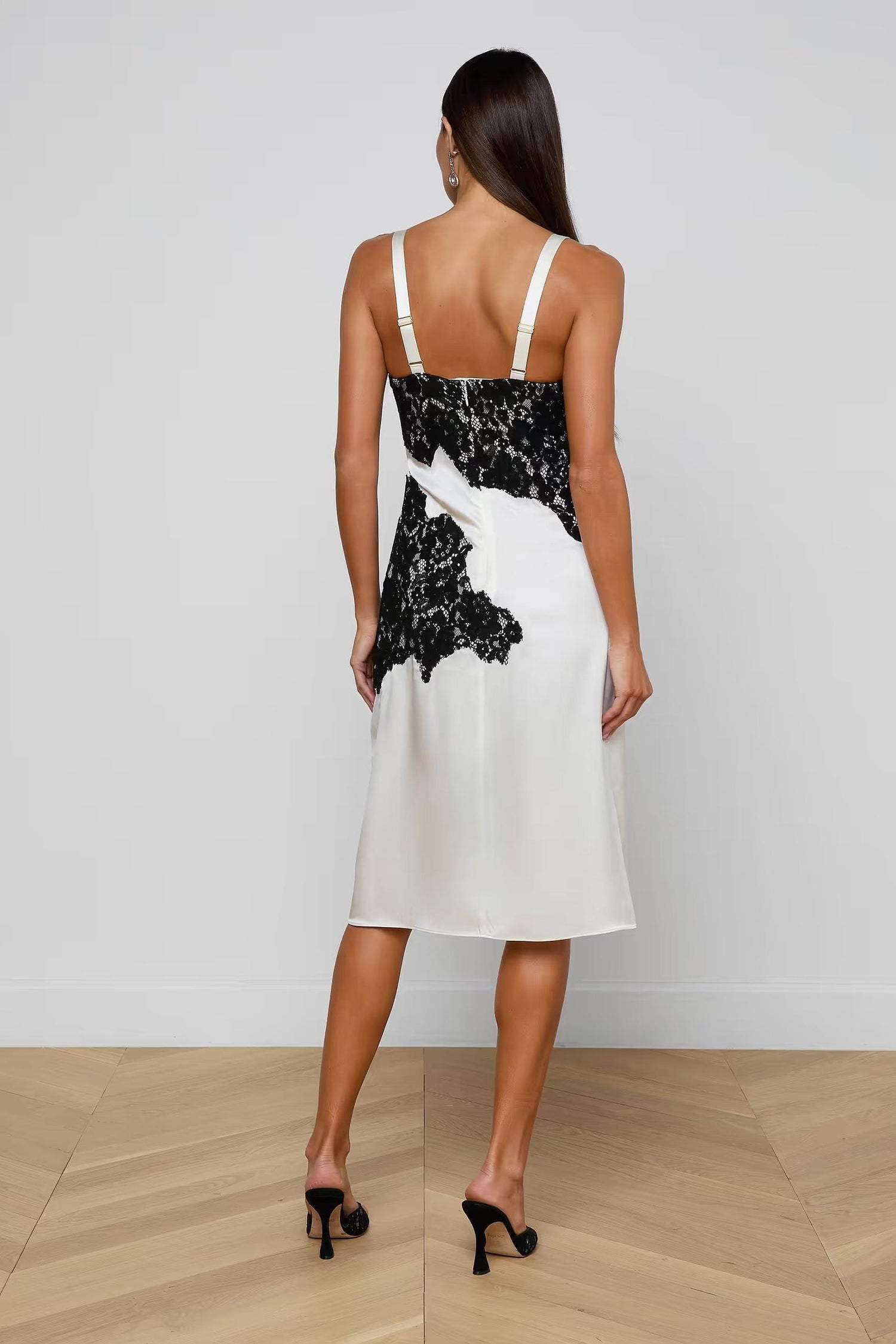 - Silk charmeuse with floral lace