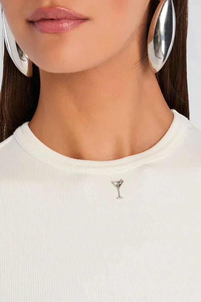 Crafted from lightweight, super-stretch ribbed knit, this Retrofête Tove top brings a playful twist to an everyday essential. Designed with a crew neckline, short sleeves, and a signature martini emblem at the chest, it’s a versatile basic with a fun, elevated edge.