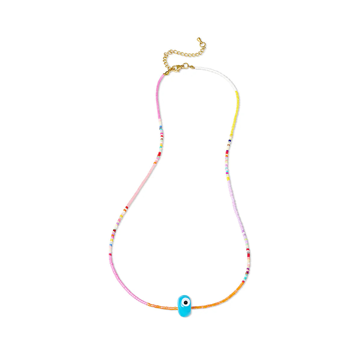 - Fluorescent Color Beaded Necklace with Blue Ceramic Eye