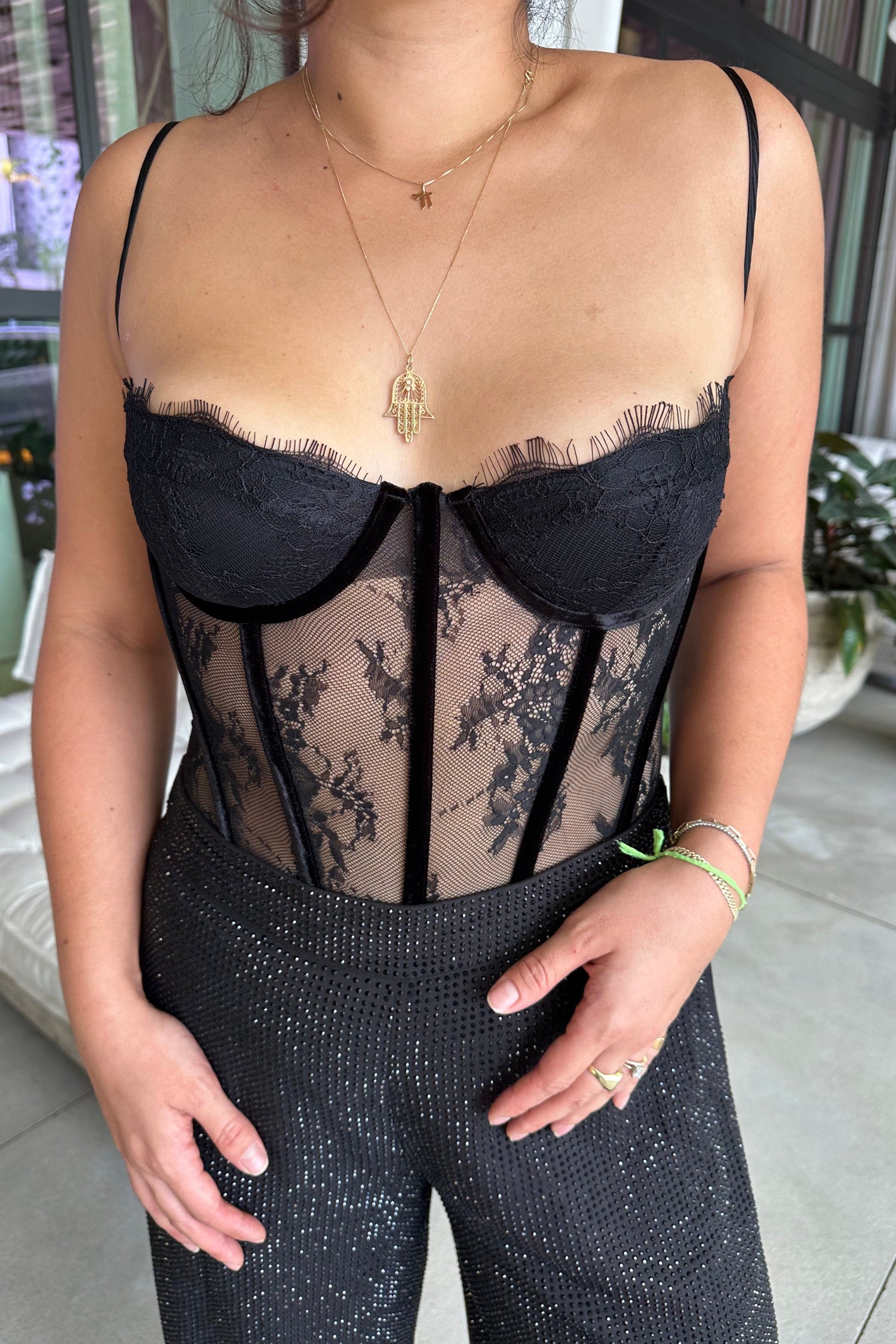 The Gisela Lace Bodysuit embodies sultry elegance, perfect for adding a bold, feminine touch to your wardrobe. Whether worn alone or layered, this piece makes a daring statement.