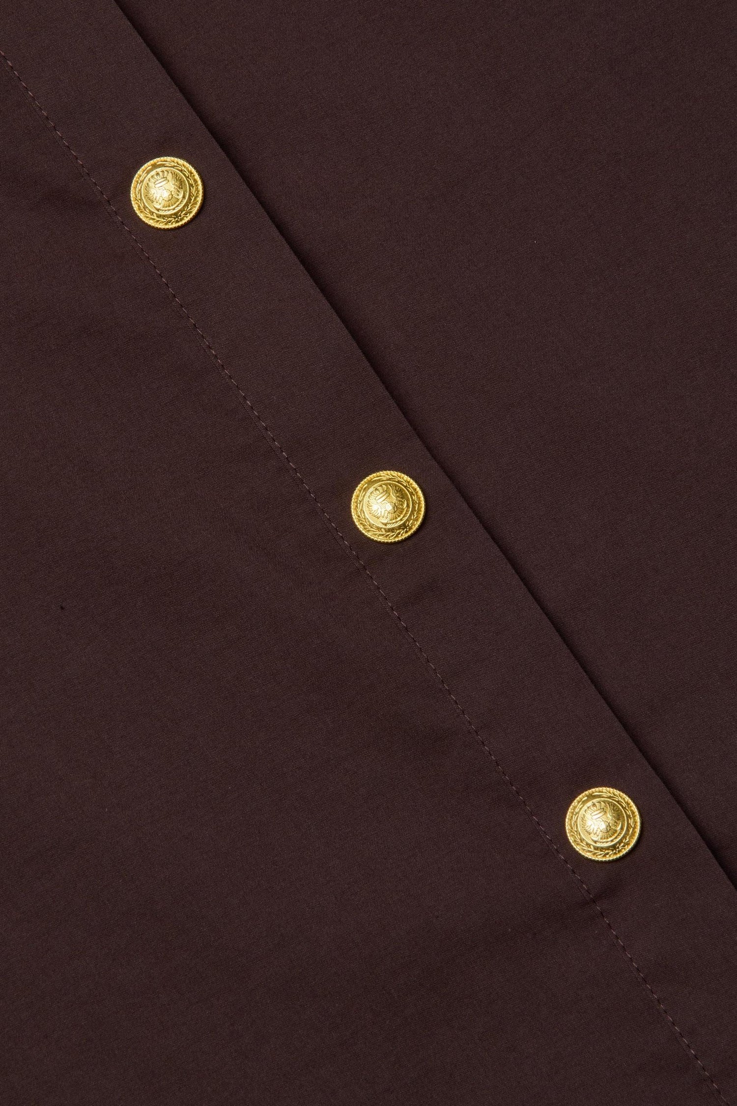 The Ellery Blouse elevates the classic poplin shirt with signature L’AGENCE details, featuring gold buttons that add a touch of understated glamour. Crafted from a stretch cotton poplin in an easy, relaxed fit, it’s designed with a shirttail hem, pleated back yoke, and long sleeves for timeless versatility. Now available in a rich coffee brown, it’s the perfect piece to wear season after season.
